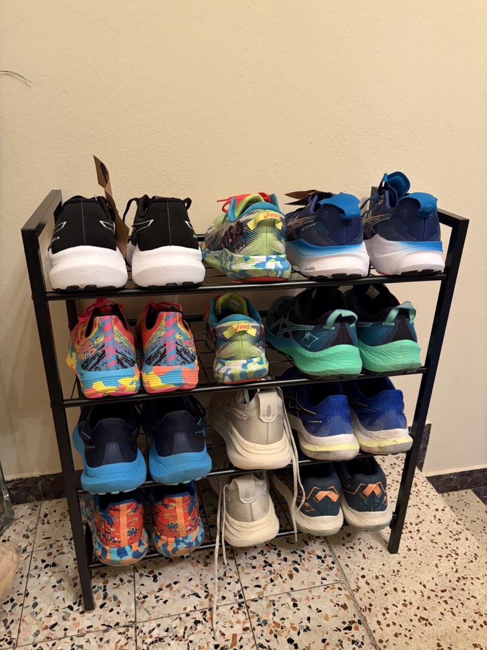 Wenn man das alles zusammennimmt, dann entsteht über die Jahre eine durchaus beachtliche Sammlung an Asics-Schuhen. Knapp 20 Paare finden sich in diversen Schuhregalen wieder. Ist das zu viel? Habe ich ein Problem? Ich denke nicht, aber das sagen Personen, die sich etwas nicht eingestehen wollen, ja immer. Wie dem auch sei, ich mag mittlerweile auch die ausgefallenen Farben, die es gibt. Anfangs habe ich eher neutrale Farben gewählt und mag diese auch immer noch. Doch zwischendurch darf es etwas kreativer sein. Besonders die Noosa-Tri-Schuhe warten immer wieder mit beeindruckenden Designs auf, weshalb diese auch zu meinen liebsten Freizeitschuhen geworden sind.