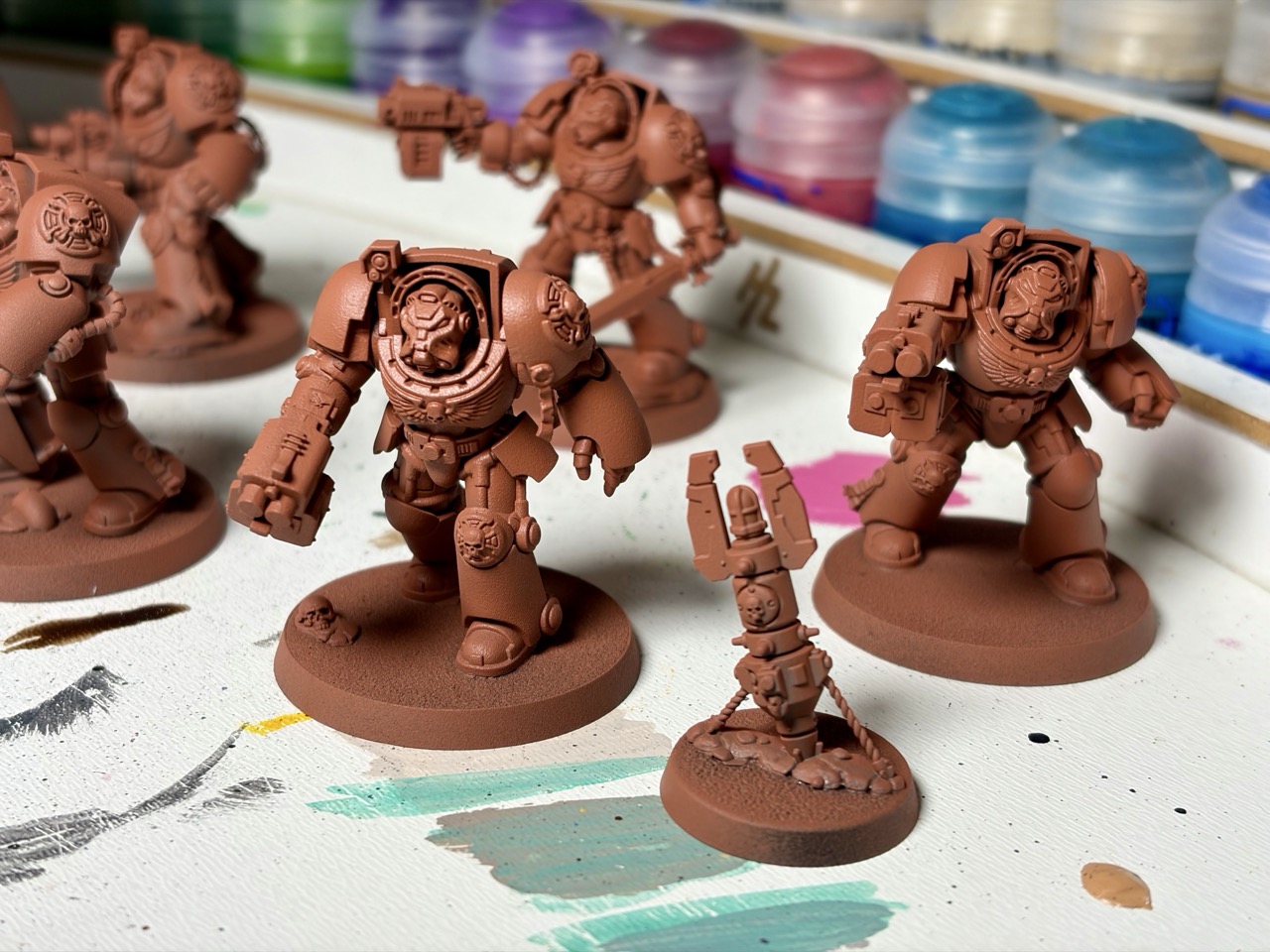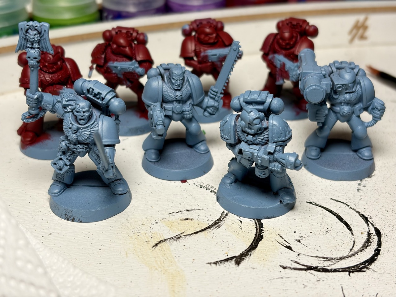 Immerhin bietet es verschiedenste Aspekte und kann schnell einen Großteil der Freizeit einnehmen. Der wohl größte Block ist das Zusammenbauen und Bemalen der Figuren. Space Marines und die diversen Alienfraktionen sind über die Jahre komplexer und kleinteiliger geworden. Allein das Zusammenbauen kann zu einer Herausforderung werden. Wenn man die Figuren dann noch halbwegs gut bemalen möchte, ist man pro Figur einige Stunden beschäftigt. In diesem Aspekt des Hobbys sollte man jedoch realistische Ansprüche haben. Durch YouTuber, die immer wieder Herausforderungen machen und das Hobby teilweise zu ihrem Beruf machen konnten, sind die eigenen Ansprüche im Zaum zu halten. Wenn man regelmäßig malt, schafft man vielleicht trotzdem „nur“ eine Handvoll Figuren pro Jahr. Wir haben (meistens) Berufe und andere Verpflichtungen, da bleibt am Ende des Tages nicht mehr allzu viel Zeit übrig. Realistische Erwartungen an sich selbst sind nicht nur wichtig, sondern notwendig.