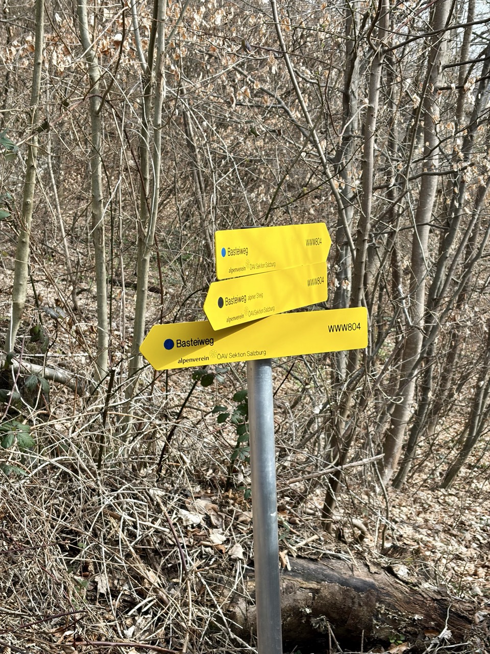 Jedenfalls gibt es hilfreiche Schilder. Genauso gibt es aber überflüssige Schilder. Wie letztens am Kapuzinerberg in Salzburg entdeckt. Wenn man den Basteiweg entlangspaziert, findet man das abgebildete Schild. Dreimal wird man auf den Basteiweg hingewiesen, auf dem man sich gerade befindet. Wenn man sich das Schild genau ansieht, erkennt man die Schwierigkeitsgrade der Wege anhand der farblichen Markierungen. Wobei der einzige abweichende, schwarz ausgezeichnete Weg jetzt auch nicht unbedingt schwierig ist. Was will man sich von einem quasi Rundweg auch erwarten? Egal in welche Richtung man geht, es ist der Basteiweg. Ob man das jetzt unbedingt dreimal ausschildern muss, sei dahingestellt.