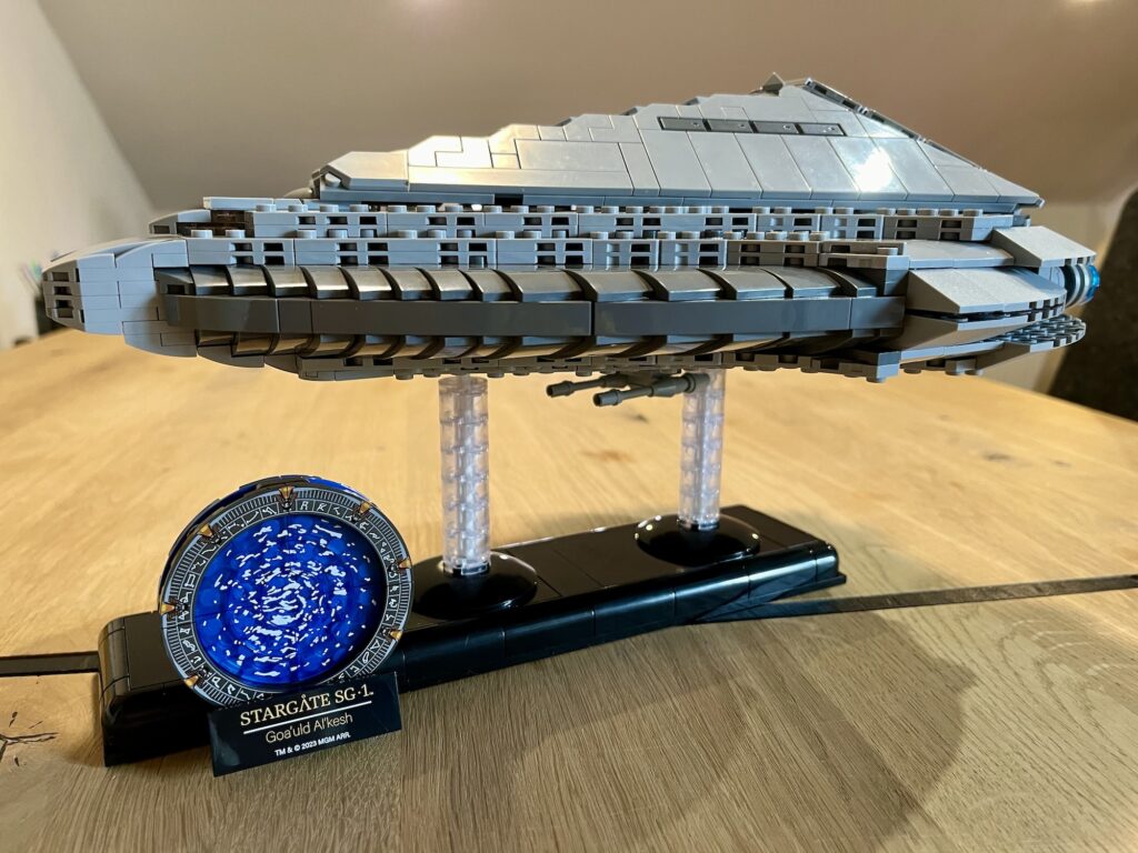 Grundsätzlich finde ich aber die Größe, die Bluebrixx für die Stargate-Schiffe gewählt hat, angenehm. Sie sind weder zu groß, noch zu klein und machen Spaß zu bauen. Bei Star Trek, wovon Bluebrixx ebenfalls die Lizenz hat, gibt es drei unterschiedliche Maßstäbe (vielleicht sogar 4?) und jede hat natürlich ihren Reiz. Dennoch finde ich den Fokus auf eine Größe ansprechend und es fließt umso mehr Liebe zum Detail hinein – hat man zumindest das Gefühl.