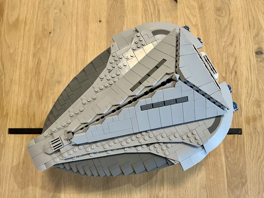 Schiffe sind natürlich immer etwas Besonderes zu bauen, in dem Sinne, dass die meisten gespiegelt sind. Das bedeutet, man baut natürlich viel doppelt. Beim Alkesh ist mir das leicht negativ aufgefallen. Ich hatte das Gefühl, dass bei der Beliskner die Symmetrie geschickter in den Bau integriert wurde, sodass sich nicht sehr viel gedoppelt hat – außer am Ende bei der Verkleidung.