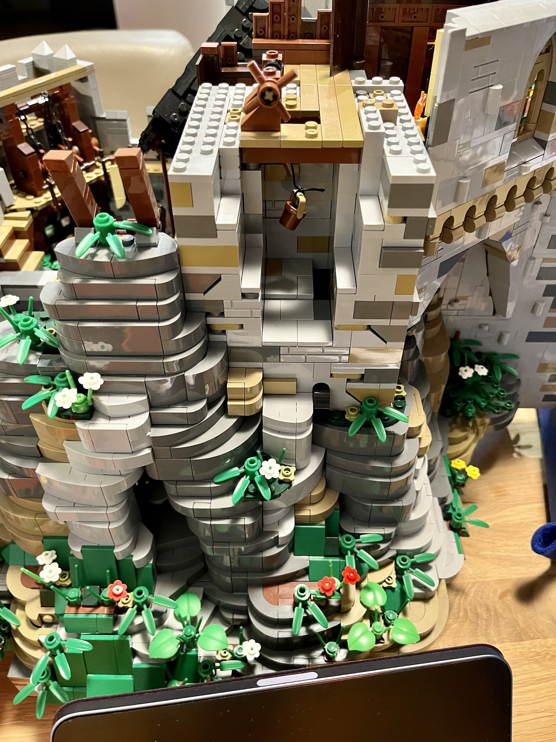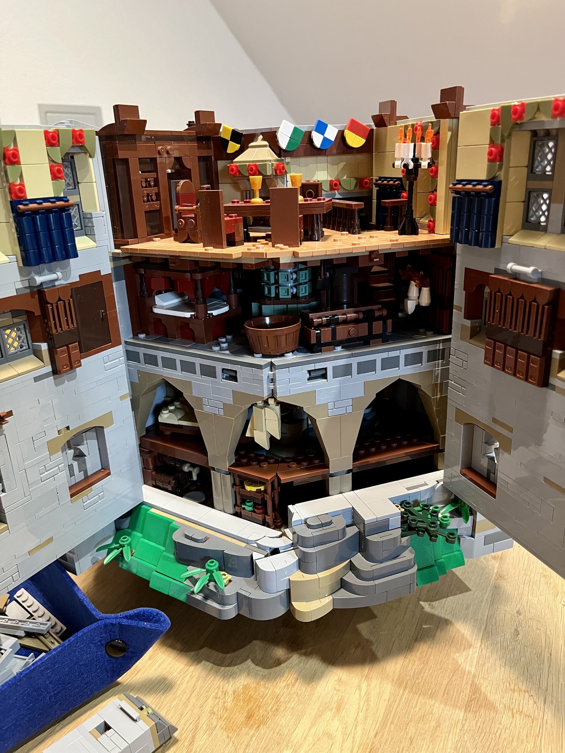Nach zwei Tagen, an denen ich abends immer etwas vor mich hingebaut habe, ist das Stockwerk nun errichtet. Dabei habe ich erst wirklich festgestellt, welches Talent hinter solch einem Bauwerk steckt. Ich bin eigentlich nicht derjenige, der sich eigene Bauwerke ausdenkt. Natürlich Kleinigkeiten, mal hier und dort, doch nichts in diesem Maßstab oder den Ausmaßen einer Burg Blaustein. Mit dem Endergebnis bin ich auch noch nicht zu 100 % zufrieden. Die Fenster passen noch nicht ganz dazu und es sind mir zu viele Reihen plates. Dabei sollten es öfter bricks sein. Aber das werde ich noch lösen.