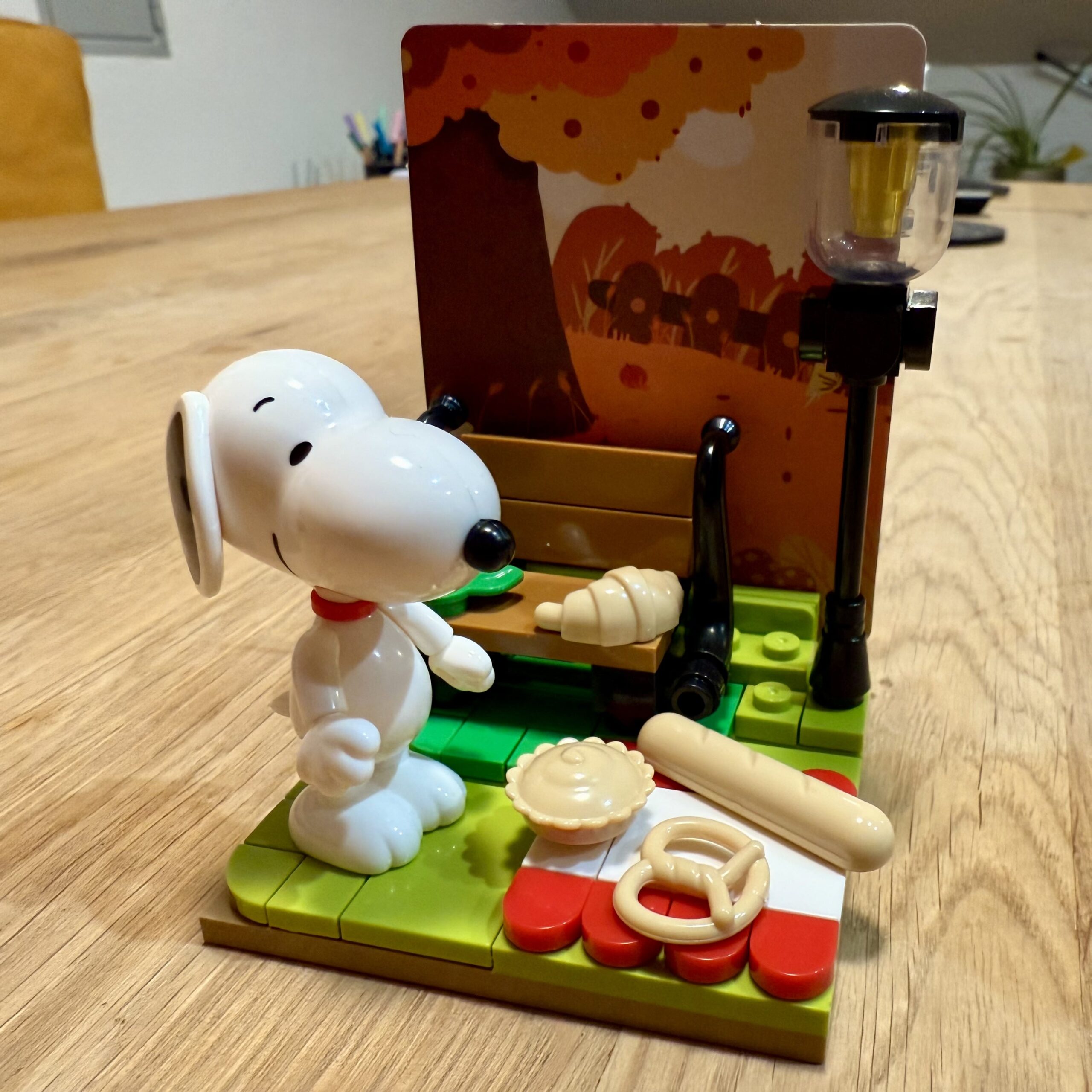 Trotz der kleinen Größe merkt man, dass sie mit Liebe zum Detail gestaltet sind. In der Picknick-Szene gibt es nicht nur eine Bank, sondern ebenso eine ausgebreitete Decke mit den Leckereien. Die Laterne und der gedruckte Hintergrund tragen noch den Rest zu einem gelungenen Set bei. Das Einzige, was ich mir noch wünschen würde, ist, dass das Baguette und die Breze aufgenoppt werden könnten, aber aufgrund der Größe dieser Teile wahrscheinlich nicht wirklich umzusetzen. Die Snoopy-Sets sind hervorragend und eine klare Empfehlung. Vielleicht schaue ich mir nächste Woche das Camping-Set an.