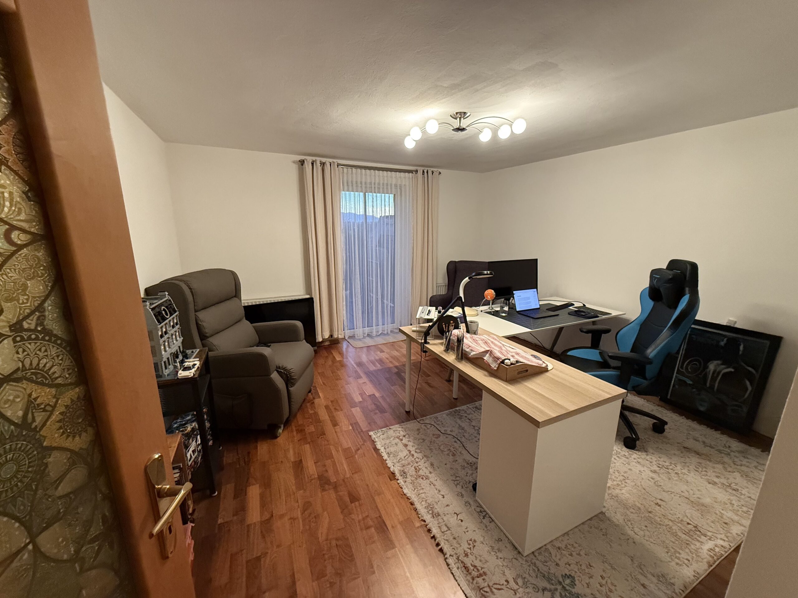 Schließlich fehlte nur noch ein Trip zu Ikea, sodass ein großer, geräumiger Eckschreibtisch entstand. So kann eine Ecke als Home-Office-Platz dienen, während die andere Seite für etwaige Hobby-Zwecke genutzt werden kann. Und ja, ich habe tatsächlich eine vorwiegend schwedische Einrichtung, auch wenn natürlich andere Möbelhäuser in der Wohnung vertreten sind. Das Büro ist allerdings hauptsächlich skandinavisch. Ein Regal und ein gemütlicher Sessel haben ebenfalls schon darin Platz gefunden, sodass ich den Raum entsprechend einräumen konnte.