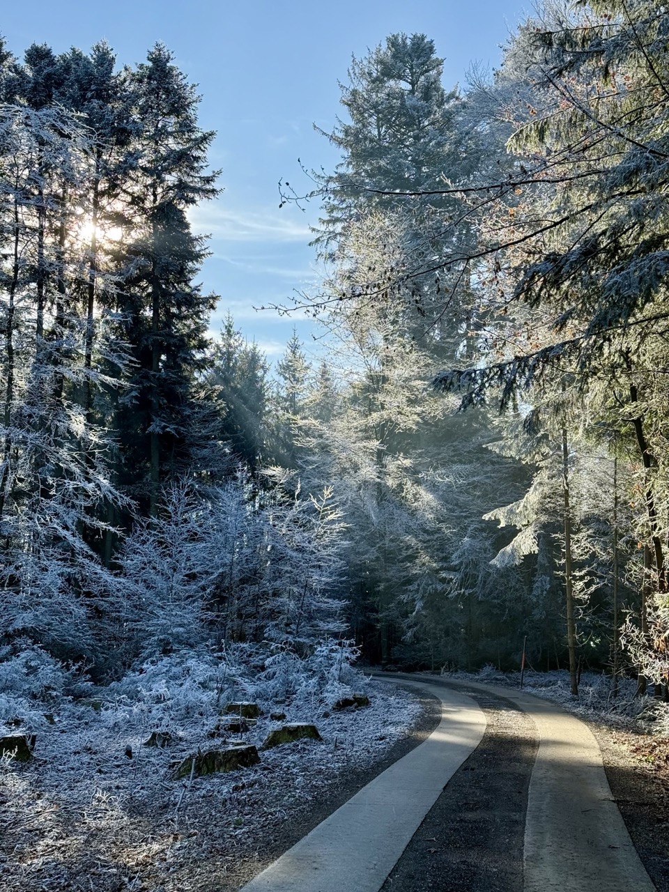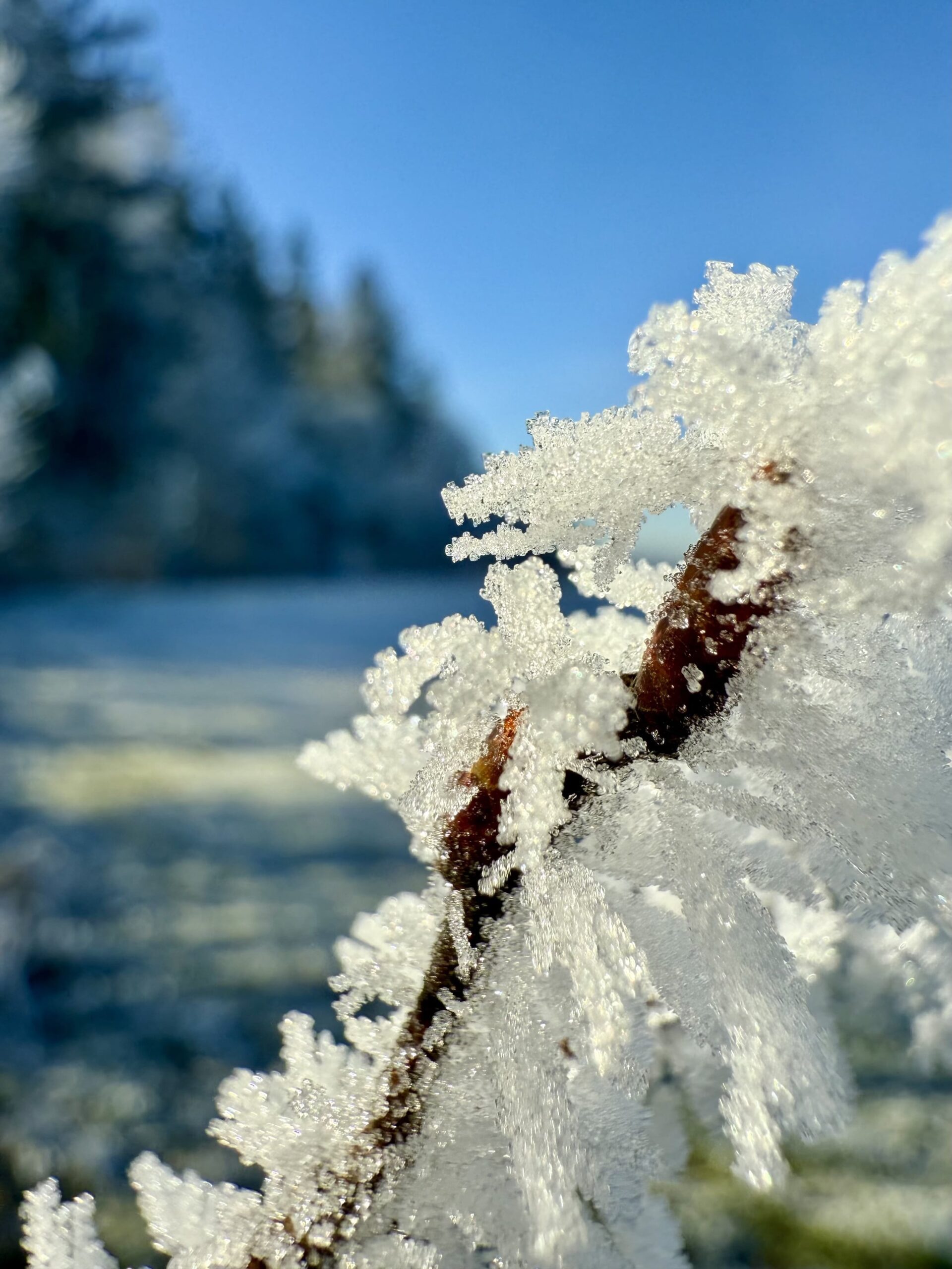 Auf meiner typischen Spazierrunde am Wochenende habe ich vor nicht allzu langer Zeit ein paar Motive gewählt, die mir besonders gefallen haben. Manche mögen nicht viel zeigen, weil ich einfach nur ein Stück Gras fotografiert habe, aber die Kristalle sehen trotzdem hübsch aus. Leider wird das Foto mit dem Weg, der durch den Wald führt, der Realität nicht ganz gerecht. Es lag viel mehr Nebel über dem Ganzen und es sah sehr mythisch aus. Nachdem der Dezember über lange Zeit eher grau und düster war, tut es richtig gut, die vielen Sonnentage zu genießen. Hoffentlich bleiben sie uns noch eine Weile erhalten.