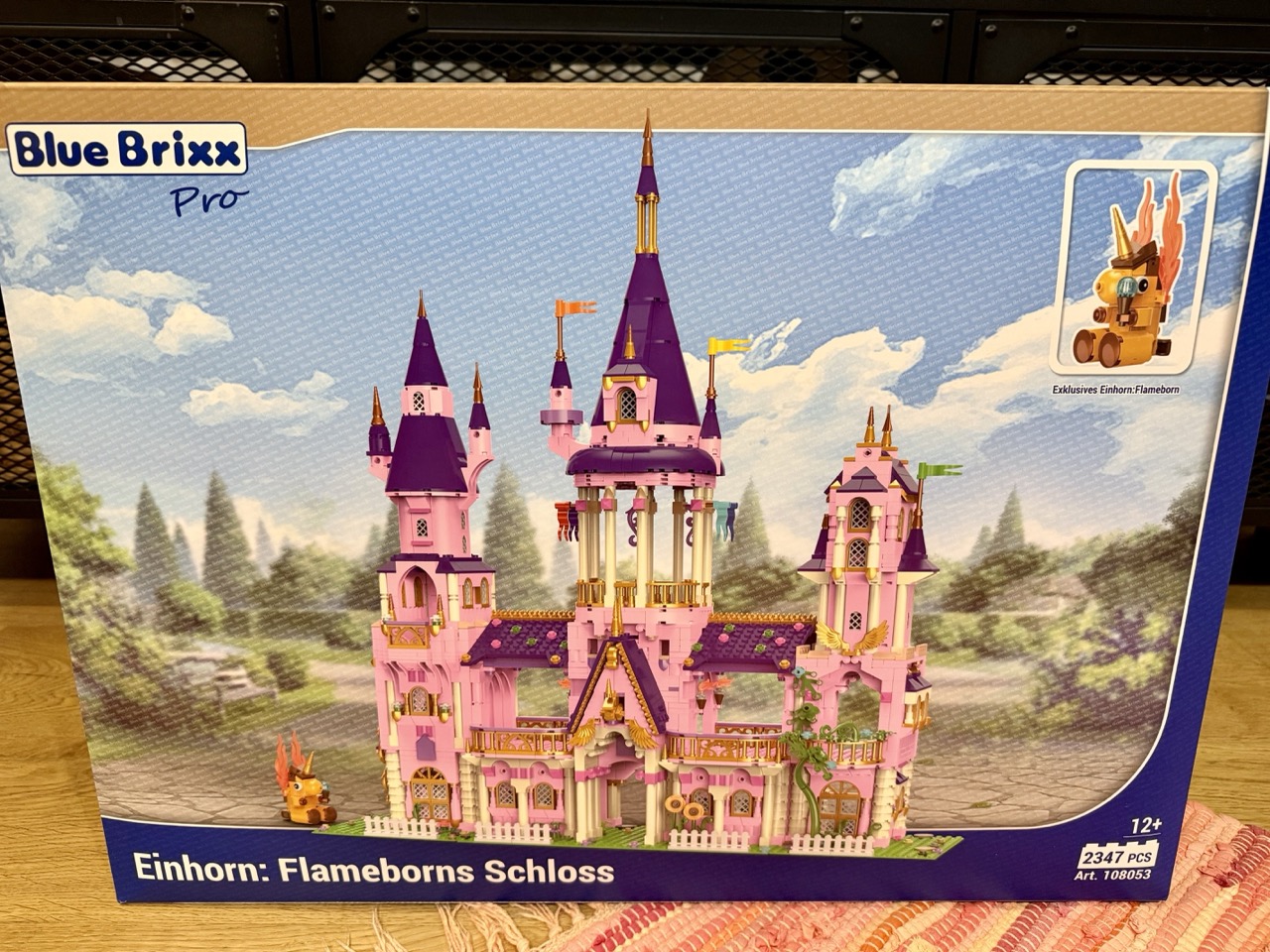 Das Einhornschloss jedenfalls ist großartig. Der Bau hat Spaß gemacht und war durchaus abwechslungsreich. Es ist natürlich nicht so detailliert ausgestattet und geplant, wie die Mittelalter-Sets, jedoch merkt man eindeutig, dass es sich um ein BlueBrixx-Modell handelt. An fast jeder Ecke gibt es etwas zu entdecken, die Türme sind alle unterschiedlich gebaut und ausgestattet. Außerdem hat das Gebäude an sich eine nette Tiefe, sodass man es gerne noch mit eigenen Details ausstatten oder eben die dazugehörigen Einhörner platzieren kann. Die exklusiv bei dem Set enthaltene Einhorn-Figur des Flameborn kann sich ebenfalls sehen lassen.