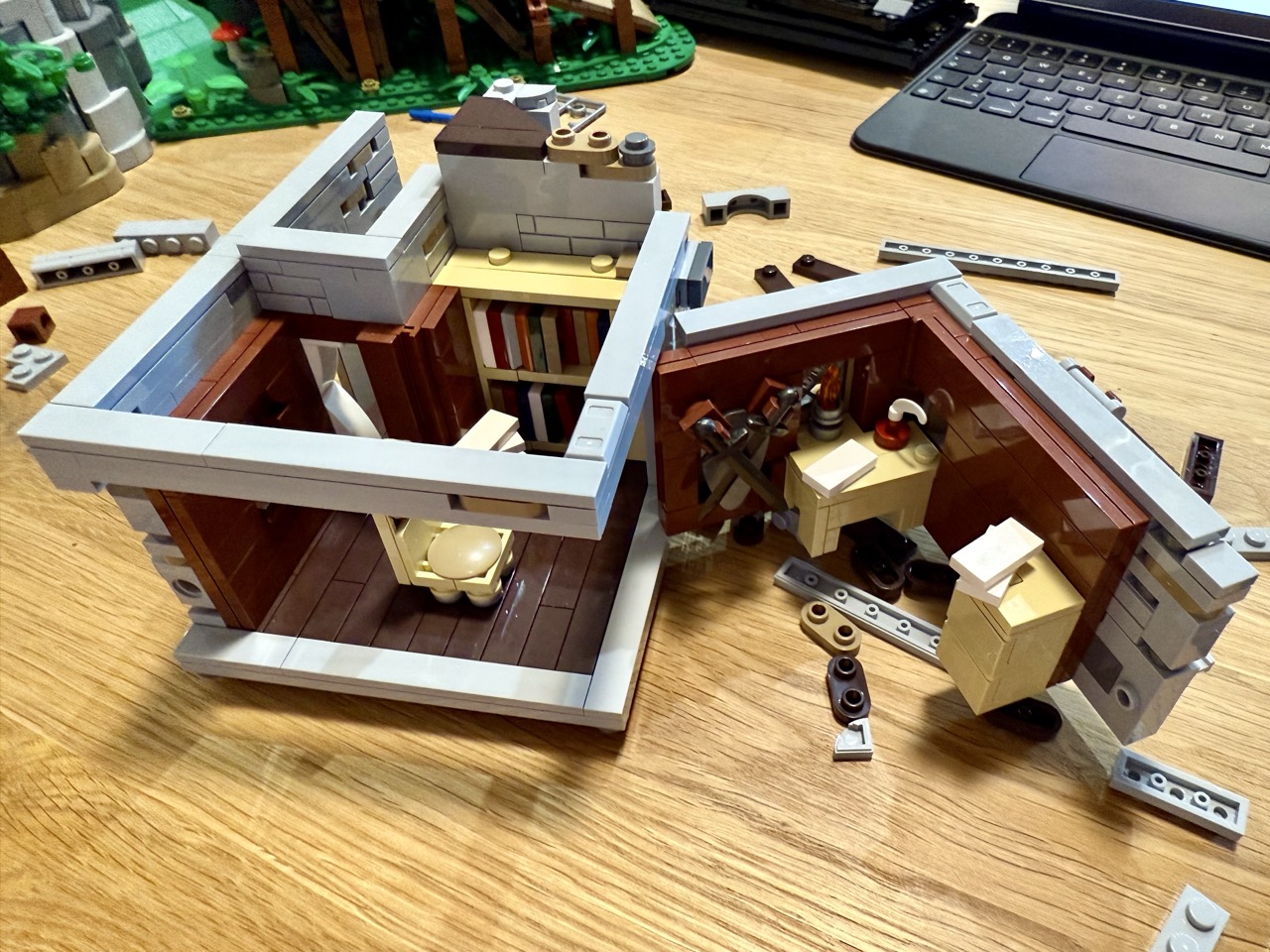 Trotzdem war der Bau an sich amüsant und mit vielen wundervollen Details gespickt. Ich zeige nicht alles auf den Fotos, denn das soll man am besten beim Bau selbst erleben. Die Bautechniken sind teilweise äußerst wild, doch am Ende hält alles gut zusammen. Ich bin ehrlich begeistert. Anton ist ein guter Designer und neuer Bauherr von Burg Blaustein. Auch bei echten Burgen, an denen lange gebaut wurde, hat sich mit Sicherheit der Bauherr das ein oder andere Mal geändert. Natürlich hat Anton einen etwas anderen Stil, als es bei Martin noch der Fall war. Ich finde das aber nichts Negatives. Er macht einen fantastischen Job.