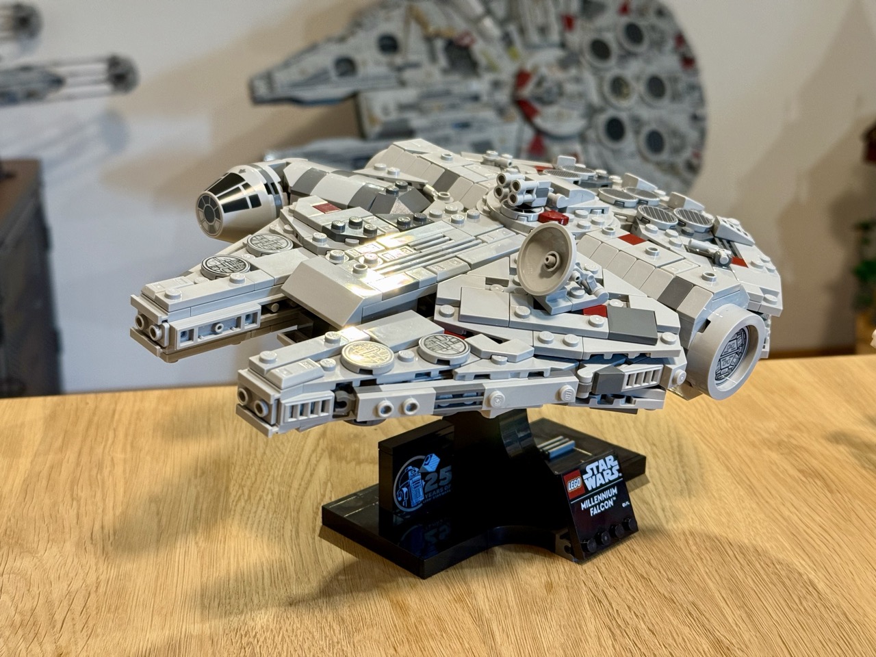 Die Medium-Variante des Millennium Falken ist knapp über 25 cm lang und sieht eigentlich gut aus. Die Details stimmen, die Proportionen wirken passend und die Drucke sind okay. Die Anleitung könnte jedoch besser sein. Aus irgendeinem Grund hat sich Lego für einen dunkelgrauen Hintergrund entschieden. Darauf Farben zu drucken und schließlich korrekt erkennen zu können, ist eine Herausforderung. Der Bau an sich ist aber keine. Es baut sich schnell weg, was für ein 55-€-Set, das eine UVP von 85 € hat, wirklich kein gutes Zeichen ist. Für über 80 € erwarte ich mir eigentlich mehr. Der Rabatt hat mich allerdings überzeugt. Nun steht es da. Und je mehr ich es ansehe, desto mehr Verbesserungen möchte ich eigentlich vornehmen.