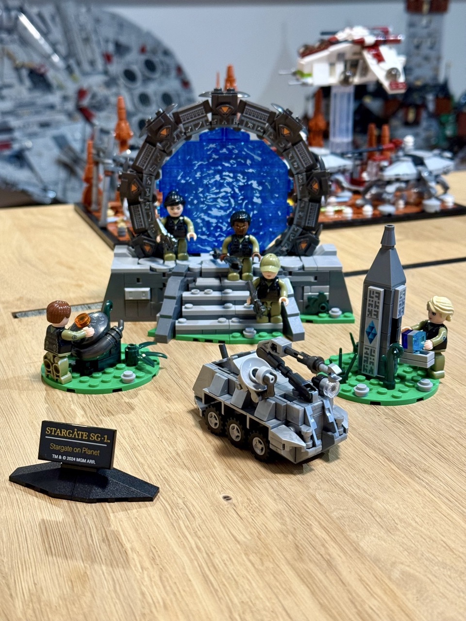 Im Mai war es endlich so weit. BlueBrixx hat ein Stargate im Minifigurenmaßstab veröffentlicht. Natürlich musste ich mir das gleich besorgen. Es sind sogar Minifiguren dabei. Zwar die Charaktere aus den späteren Staffeln, aber trotzdem bin ich sehr begeistert von dem kleinen Set. Es sind unfassbar viele Prints in dem Set dabei. Das komplette Stargate ist vorne und hinten bedruckt. Das DHD (Dial-Home-Device) ist detailliert, und wenn man dem Produktvideo glauben darf, haben sie sich sehr viel Mühe gegeben, dass die Symbole passen.