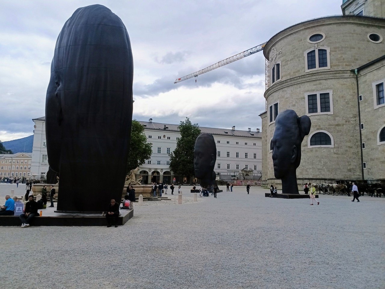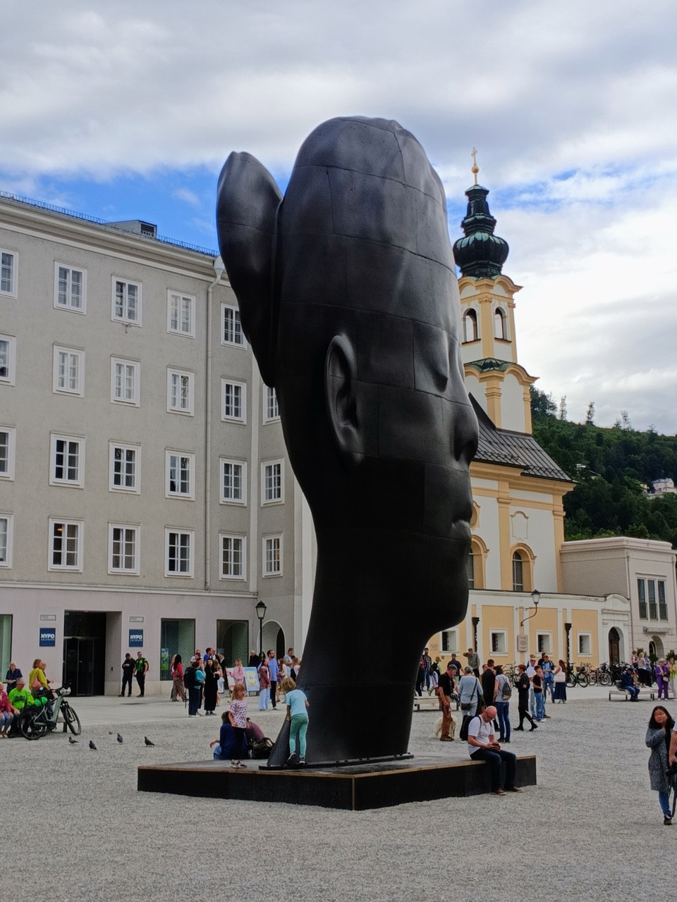 Nach dem leckeren (für mich alkoholfreien) Bier im Stieglkeller gingen wir also an den Köpfen vorbei. Man kommt aktuell ja kaum an einer Zeitung vorbei, in der nicht darüber berichtet wird. Anders als für die sonstigen modernen Kunstwerke, die in der Stadt verteilt sind, handelt es sich hierbei nur um eine temporäre Installation. Die Stadt hat dies scheinbar aus eigener Hand bezahlt und es war nicht gerade billig. Jedoch ist ihnen mit dieser Aktion durchaus etwas Eindrucksvolles gelungen. Die Fotos werden den tatsächlichen Köpfen nicht gerecht.